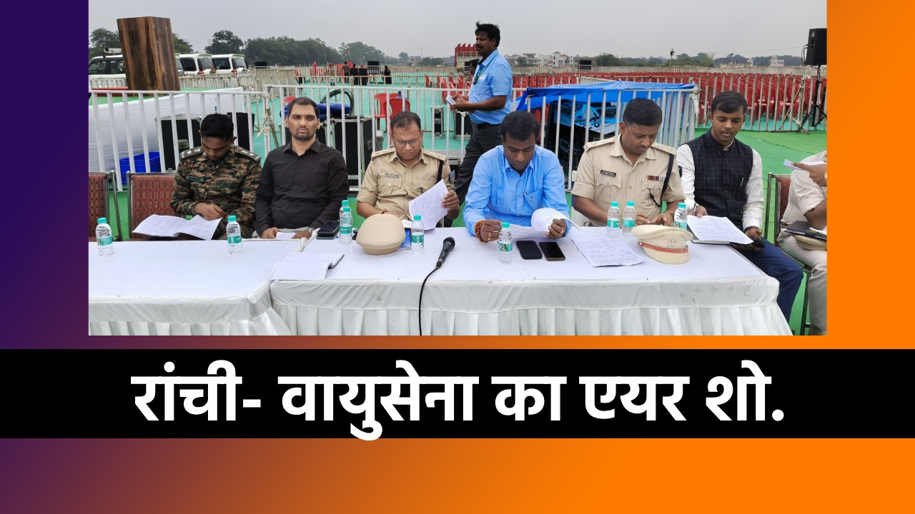 रांची, 18 अप्रैल 2025 — रांची के उपायुक्त सह जिला दंडाधिकारी मंजूनाथ भजन्त्री ने आगामी 19 और 20 अप्रैल को नामकुम स्थित खोजा टोली आर्मी ग्राउंड में आयोजित होने वाले भारतीय वायु सेना (IAF) के एयर शो को लेकर महत्वपूर्ण समीक्षा बैठक आयोजित की। इस बैठक में सभी जिला स्तरीय वरीय पदाधिकारी, पुलिस अधीकारी एवं संबंधित विभागों के प्रतिनिधि उपस्थित रहे।