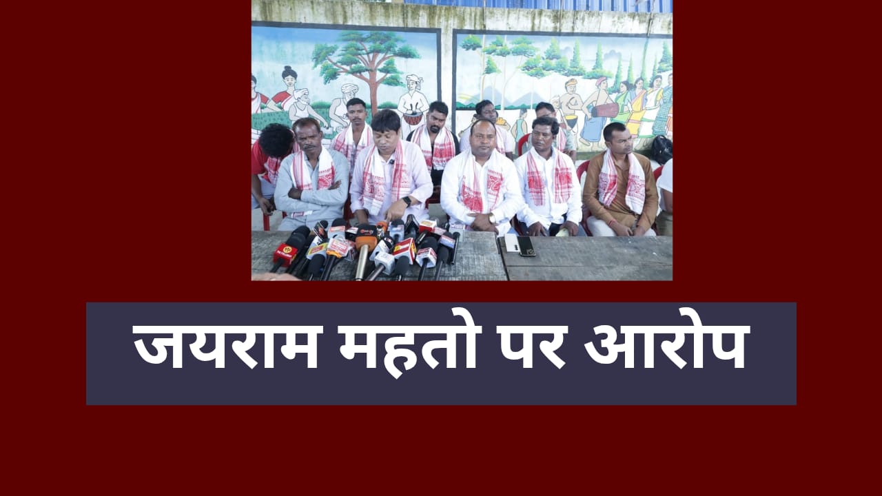 अजय तिर्की ने डुमरी विधायक जयराम महतो पर गंभीर आरोप लगाए कि वे बालू, कोयला और पशु तस्करी जैसी अवैध गतिविधियों में शामिल हैं और कमीशन लेते हैं।
