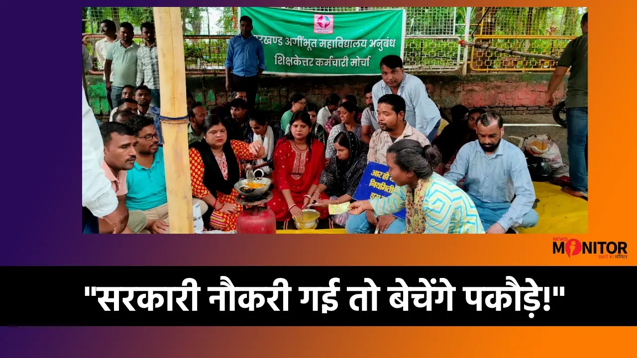 Ranchi- 86वें दिन धरने पर बैठे कर्मचारियों ने पकौड़ा बेच प्रदर्शन को दिया नया मोड़.
